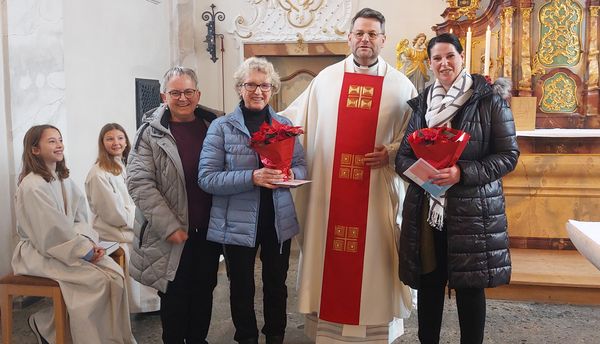 Gefeiert wurde bereits an Pfingsten 250 Jahre Kirchenweihe St. Nikolaus. Jetzt am Patrozinium wurde ein feierliches Hochamt mit Pfarrer Hannes Rümmele Leiter der neuen Seelsorgeeinheit "an der Wutach" gefeiert. Musikalisch gestaltete der Kirchenchor Krenkingen unter Leitung von Birgit Rogg die Messe. Vorgestellt wurden in der Messe ebenfalls die drei Kommunionkinger 2026 die allerdings in Tiengen feiern werden. Fridolin Jehle, Jona Alex und Henry Oberle durften sich der Kirchengemeinde zeigen. Anschließend traf man sich zum Gemeindehock wo die zahlreichen Gäste vom Gemeindetam um Lukas Hug und den Ministranten für die Bewirtung sorgten. Im Gottesdienst wurde Verena Albicker von Pfarrer Rümmele in den Ruhestand verabschiedet. Sie hat über 32 Jahre für die Reinhaltung der Krenkinger Kirche gesorgt und diesen Dienst stets gewissenhaft ausgeführt. Natascha Walde wurde ebenfalls aus dem Kirchendienst verabschiedet. Sie hatte sich mehrere Jahre um die Kirchendekoration gekümmert und kann dies aus zeitlichen Gründen nicht mehr leisten. Mit einem Geschenk und Blumen wurde die beiden Frauen verabschiedet. In seinen Dank schloß Pfarrer Rimmele auch Irmtraud Maier vom Gemeindeteam und Messnerin mit ein.