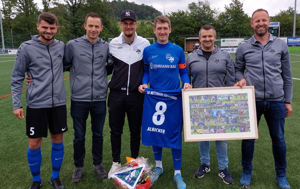 Verabschiedet wurden bei der SG Mettingen - Krenkingen am letzten Spieltag Co Trainer Moritz Meister und Daniel Albicker. Daniel Albicker spielte 19 Jahre aktiv für die 1. Mannschaft des FC Tiengen 08 und der SG Mettingen Krenkingen.